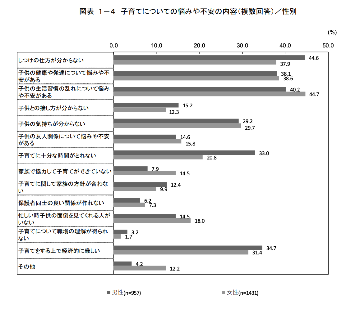 文部科学省の調査結果から、多くの親がどんなことに悩みや不安を感じているのかを見てみましょう。